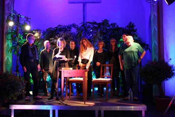 Die Bestsellerautorin Ursula Poznanski, ebenfalls aus Wien und bekannt durch ihren preisgekrönten Roman „Erebos“, beschloss die lange Nacht mit „Die Vernichteten“, dem dritten Teil ihrer Eleria-Saga. Dieser dystopische Roman setzt sich mit zukünftigen Gesellschaftsformen und technologischen Möglichkeiten auseinander. Gespannte Stille breitete sich im Kirchenraum angesichts der im Text plastisch dargestellten Lebensbedingungen aus.